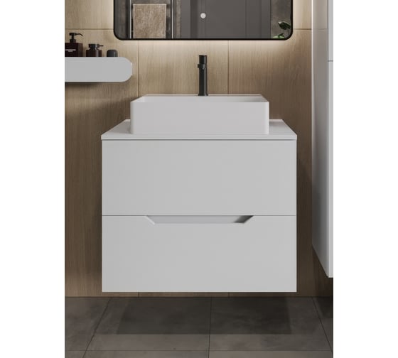 Тумба подвесная с накладной раковиной Orange Line отличается современным дизайном. Изготовлена из МДФ высокой плотности. Мебель покрыта пленкой ПВХ с технологией Soft Touch — ламинация класса премиум, с повышенными тактильными свойствами. Пленка обеспечивает дополнительную защиту мебели от влаги и перепадов температуры. На ящики установлены комплекты скрытых направляющих Hettich, обеспечивающие полное выдвижение и имеющие встроенную систему плавного и бесшумного закрывания. Исполнение - матовое. Материал раковины - фарфор. Отверстие в столешнице под раковину монтируется самостоятельно. Донный клапан приобретается отдельно.