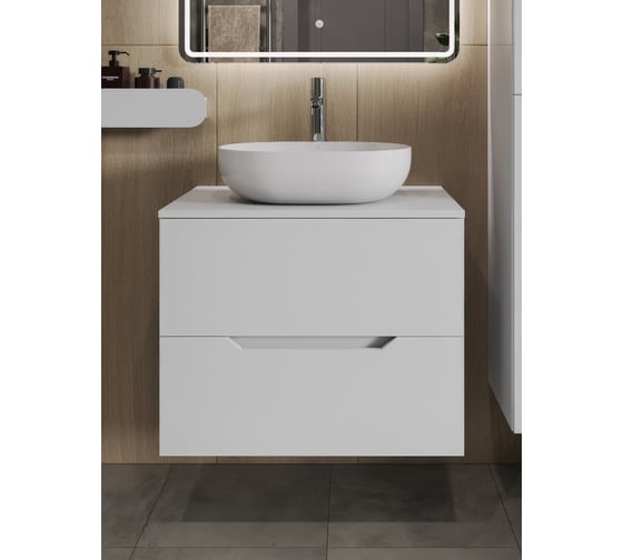 Тумба подвесная с накладной раковиной Orange Line отличается современным дизайном. Изготовлена из МДФ высокой плотности. Мебель покрыта пленкой ПВХ с технологией Soft Touch — ламинация класса премиум, с повышенными тактильными свойствами. Пленка обеспечивает дополнительную защиту мебели от влаги и перепадов температуры. На ящики установлены комплекты скрытых направляющих Hettich, обеспечивающие полное выдвижение и имеющие встроенную систему плавного и бесшумного закрывания. Исполнение - матовое. Материал раковины - фарфор. Отверстия в столешнице под раковину и смеситель монтируются самостоятельно. Донный клапан приобретается отдельно.