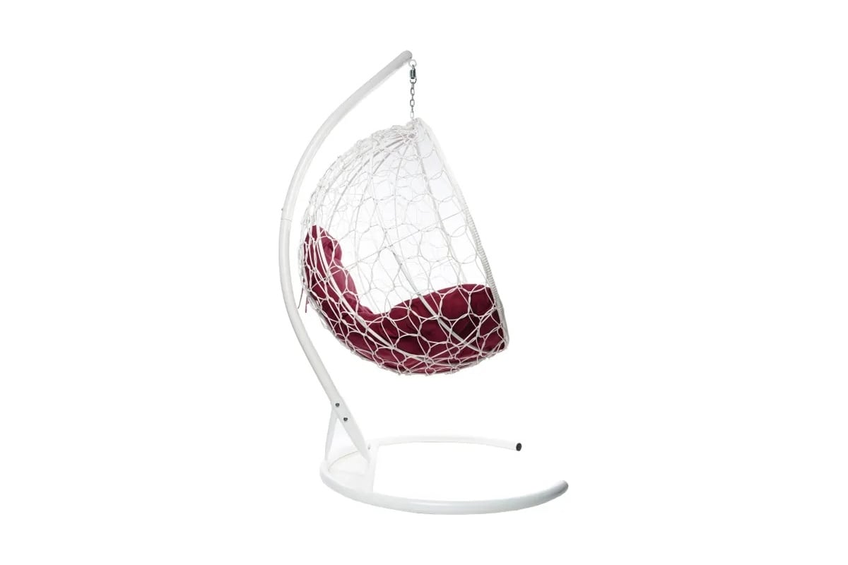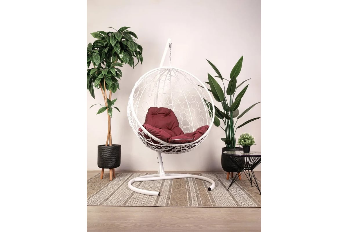 Подвесное кресло M-GROUP КРУГ с ротангом белое, бордовая подушка 11050102