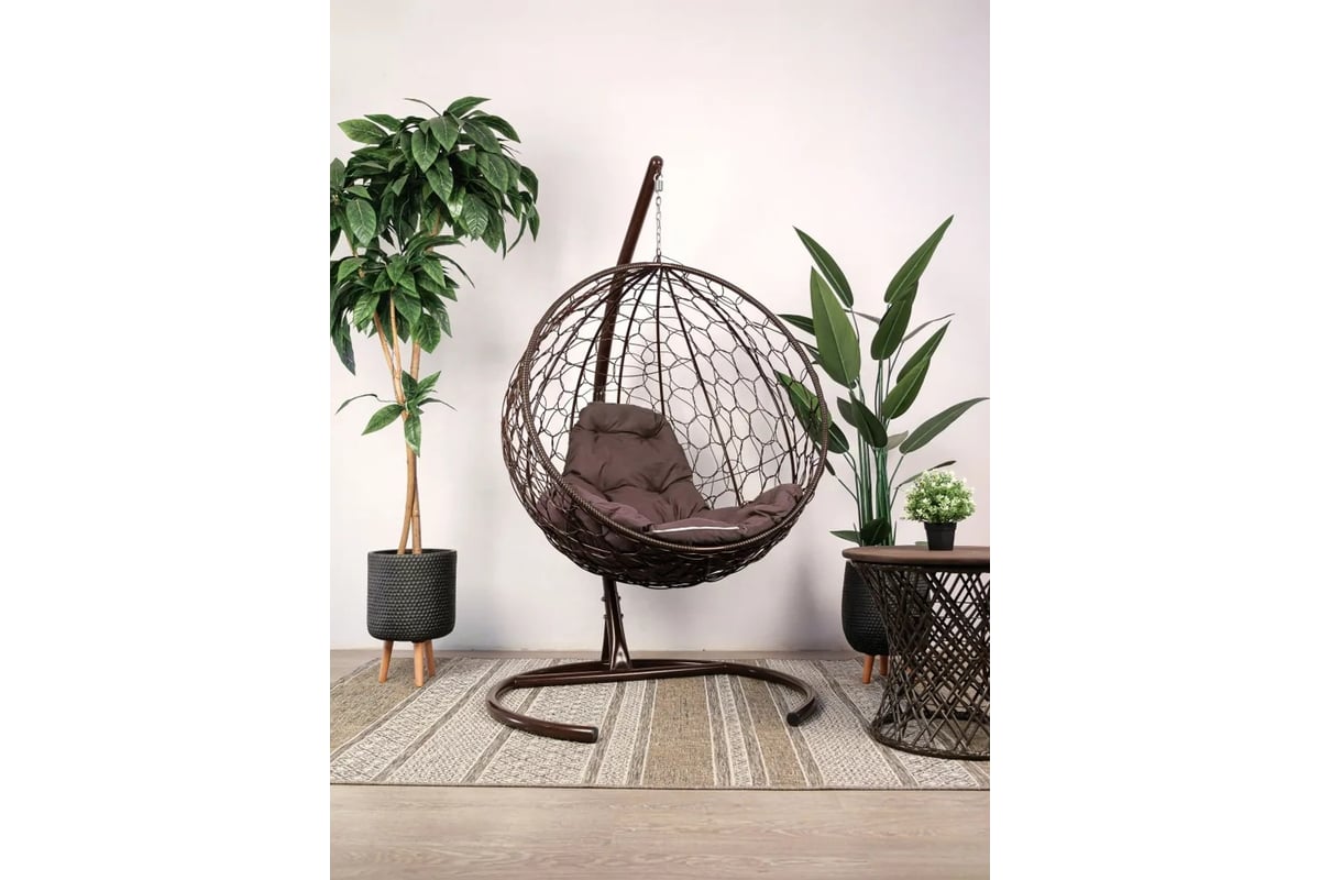 Подвесное кресло M-GROUP КРУГ с ротангом коричневое, коричневая подушка 11050205