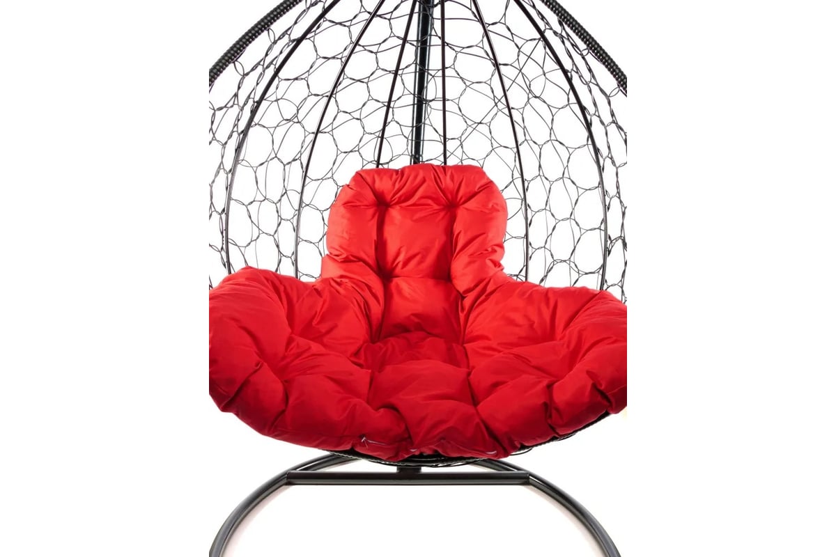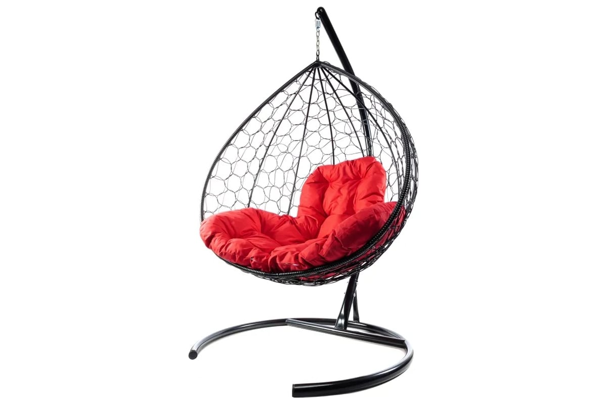 Подвесное кресло M-GROUP XL с ротангом чёрное, красная подушка 11120406