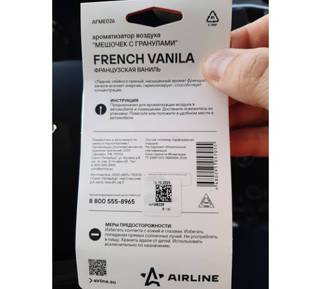 Подвесной ароматизатор Airline Мешочек с гранулами французская ваниль AFME026 освежает запах в салоне автомобиля.