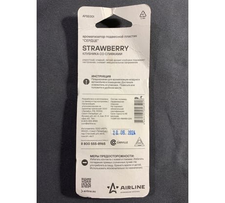 Отзывы о подвесном ароматизаторе Airline Сердце клубника со сливками AFSE001