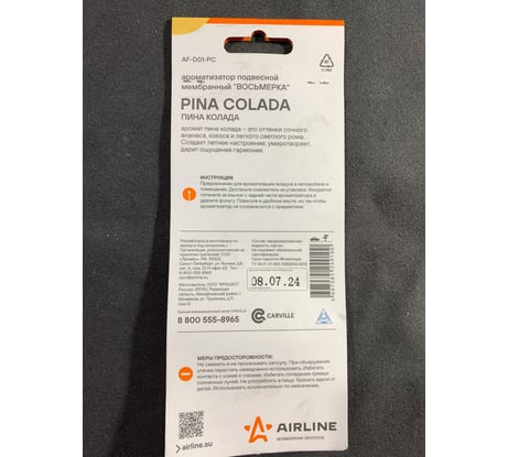 Отзывы о подвесном ароматизаторе Airline Восьмерка, пина колада AF-D01-PC
