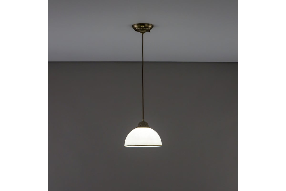 Светильник Citilux Адриана CL405113 в классическом стиле. Основание металлическое, цвет бронза. Плафон стеклянный, матовый, рифленый с благородной золотистой окантовкой. Высота подвеса легко регулируется при установке в диапазоне от 21см до 1,25м. Более того, изделие можно использовать как потолочную модель, без видимой части подвесного шнура. В светильнике используется 1 лампа с цоколем Е27 максимальной мощностью для ламп накаливания 75Вт. Светодиодные лампы можно устанавливать более яркие. Площадь освещения около 4,5м². Тип крепления к потолку-планка.