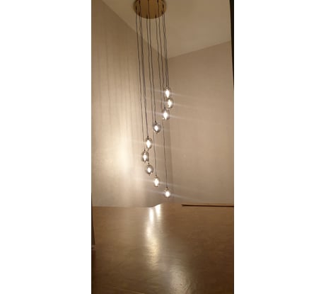 О люстре неоднозначные впечатления. Ожидание и реальность можно по фото увидеть. Длина проводов значительно короче в карточке товара. В действительности же провода намного длиннее. Света от нее очень мало - большой ночник. Скорее всего как украшение для светлого времени суток.