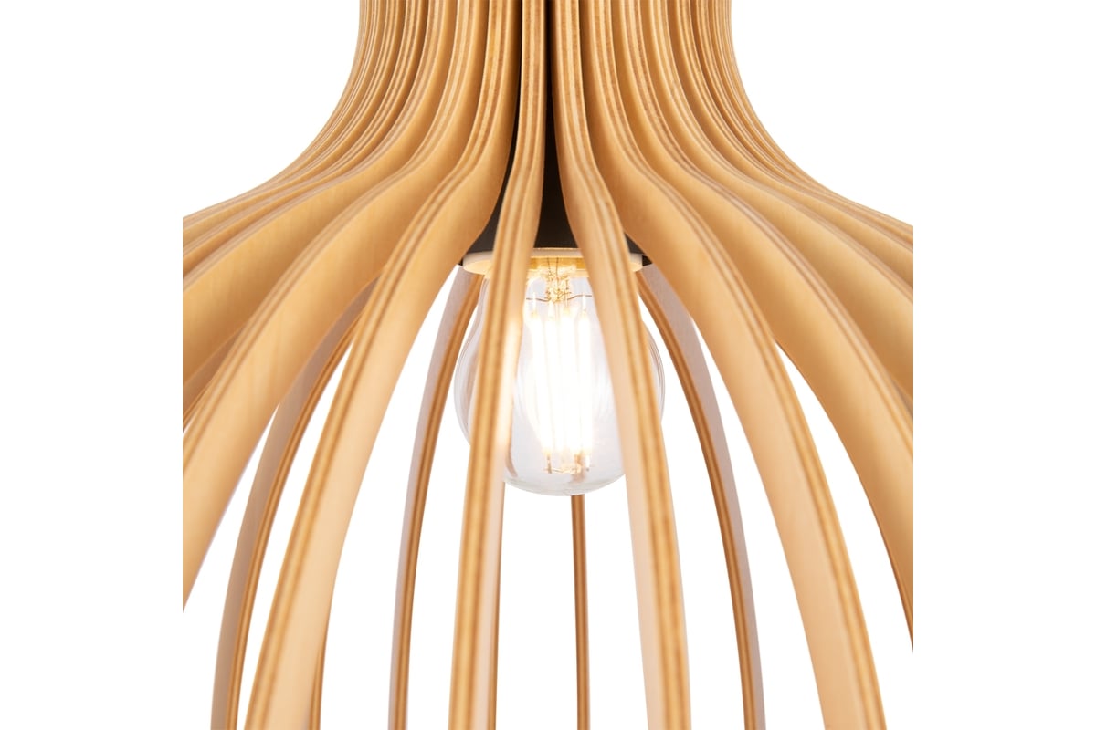 Материал арматуры – металл, цвет – черный. Абажур – 5-ти слойная фанера бежевого оттенка, покрытая специальным лаком. Тканевый черный провод. Регулируемая высота. Цоколь E27.