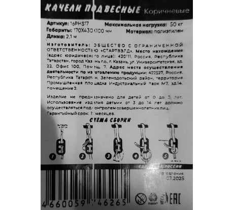 Сиденье качелей подвешивается на очень прочные и износостойкие полипропиленовые канаты, толщиной 10 мм, с возможностью регулировки до 170 см каждый. Инструкция по регулировке высоты находится на этикетке на упаковке с качелями, а также на картинке с инфографикой.