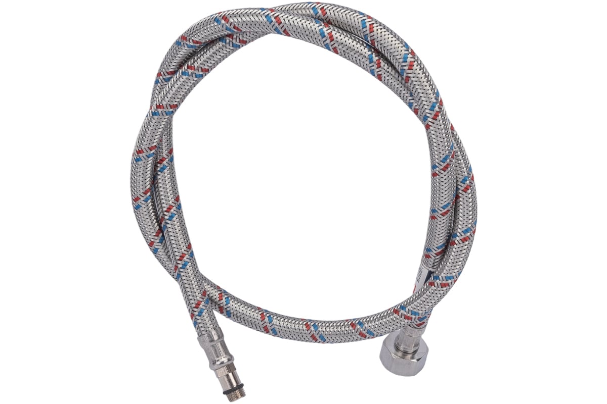 Оплетка гибкой подводки сплетена из 7 нитей из нержавеющей стали, материал долговечен, не подвержен коррозии.