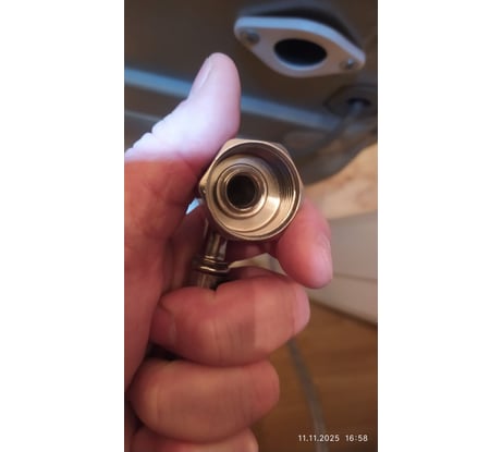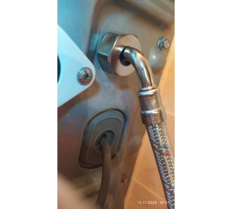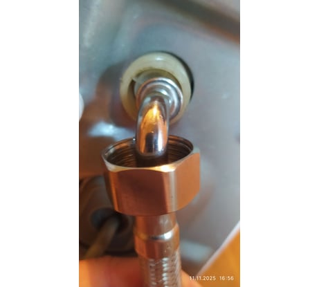 Подводка имеет угловое присоединение — что является лучшим решением при подключении сантехнических приборов в условиях ограниченного пространства Внешнее расстояние присоединенной подводки до плоскости стены всего 37мм.