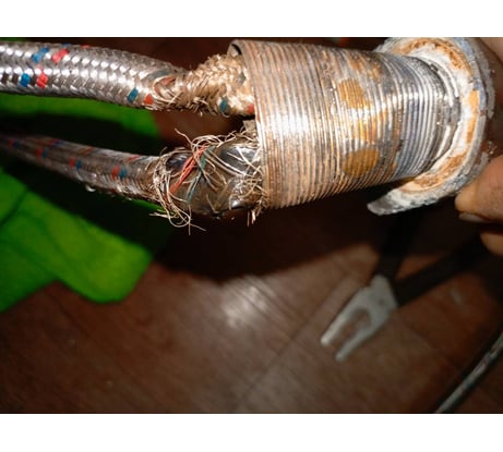 Через 10 месяцев использования, подводка для горячей воды то ли сгнила, то ли вот так порвалась сама по себе.
