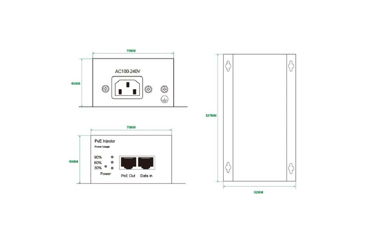 Amatek PoE инжектором AN-PI90GМ 7000701 - это высокопроизводительное устройство, которое обеспечивает питание устройств через Ethernet-кабель. Он поддерживает стандарты PoE IEEE802.3af, at и bt, что позволяет передавать питание на расстояние до 100 метров по медным кабелям.