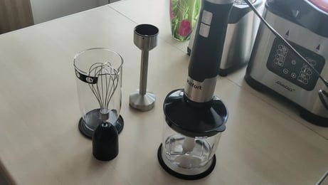 Отличный погружной блендер, был в наличии кухонный комбайн другой фирмы, но его не удобно мыть после использования, он громоздкий и занимает много места на кухне, поэтому захотелось приобрести более компактную технику для быстрого приготовления пюре для ребёнка или коктейля для себя, всё необходимое есть в комплекте, и венчик и стакан и тд. Я рада очень покупке)))!!!!