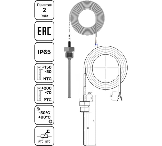 - Погрешность измерения: PTC = ±0,3 °C