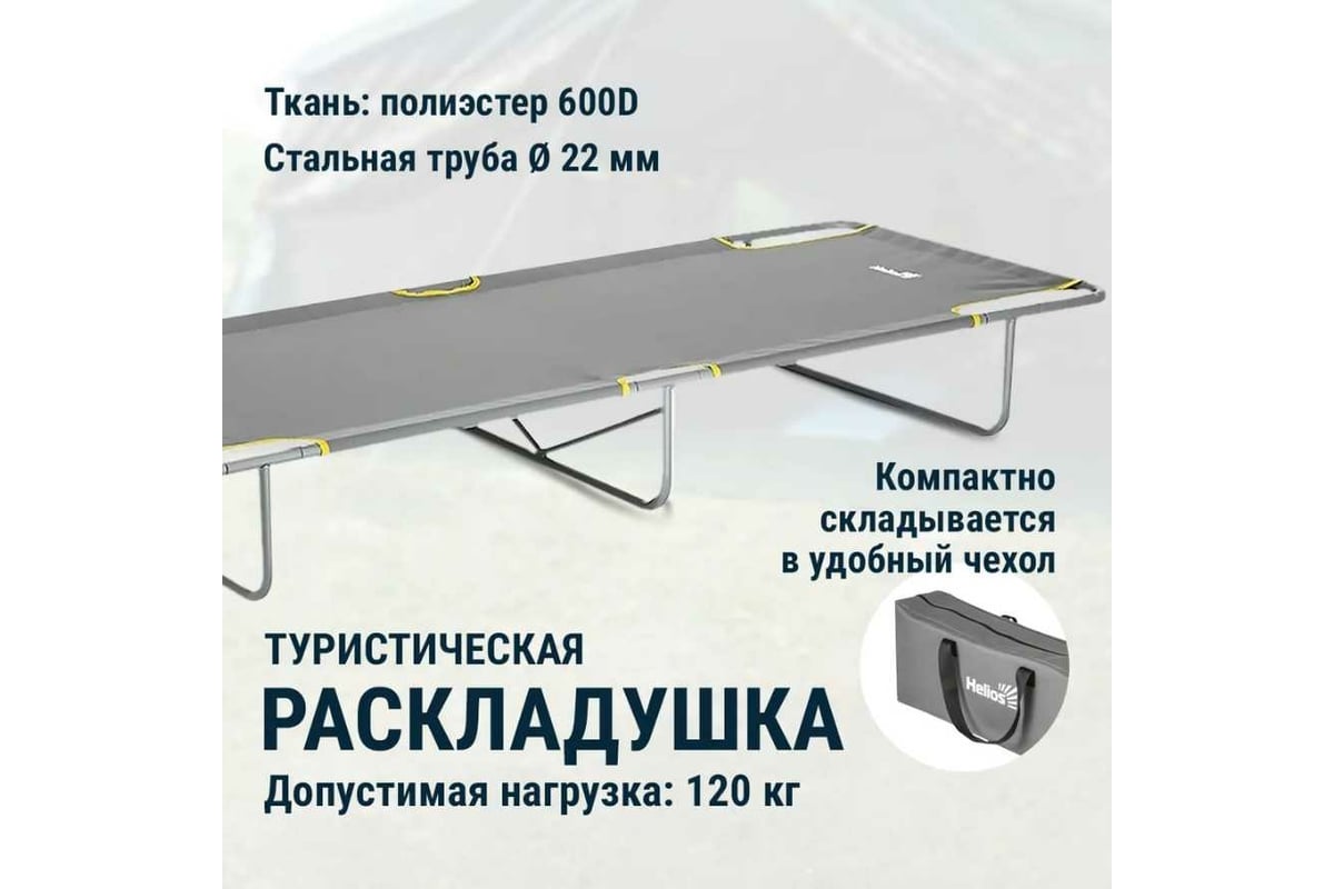 Походная кровать Helios T-HS-BD630-98828-GG 120 кг, зеленый/серый 248395