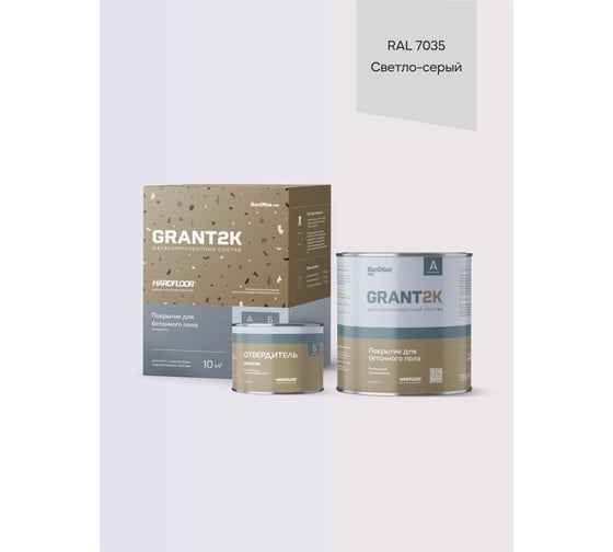 Покрытие для бетонного пола HardMax полиуретановое двухкомпонентное HARDFLOOR GRANT 2К PRO RAL 7035 Светло-серый (комплект 2,2 кг) 4 690417149995