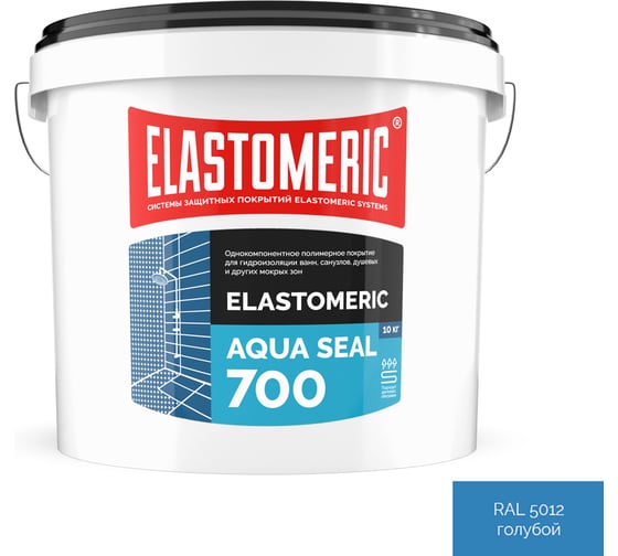 ELASTOMERIC AQUA SEAL 700 – однокомпонентное, готовое к применению, мембранное покрытие с высоким сухим остатком, специально разработанное для создания гидроизоляционного эластичного водонепроницаемого покрытия под плиточные облицовки в помещениях, подверженных периодическому увлажнению (ванных, душевых, туалетах, кухнях, лоджиях и т.д.). После высыхания и полимеризации образует резиноподобную, бесшовную, водонепроницаемую мембрану.