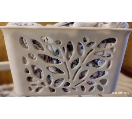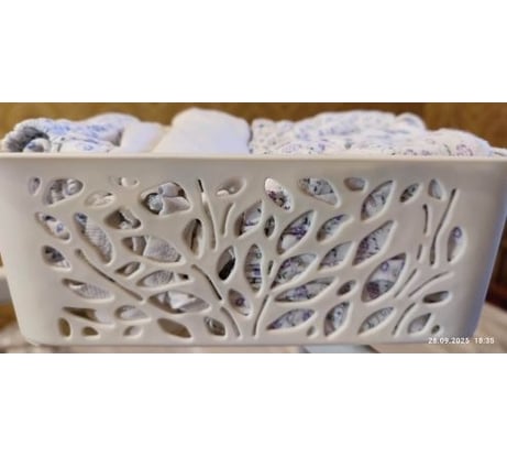 Удобный размер для того, чтобы аккуратно сложить разные мелкие вещицы в шкафу. Ажурные вырезы по бокам позволяют увидеть, что там внутри и легко достать нужное. Ну и с ними просто красиво)