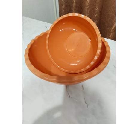 Отличная миска ,качественный пластик,приятный терракотовый цвет.На внешней стороне имеется орнамент.