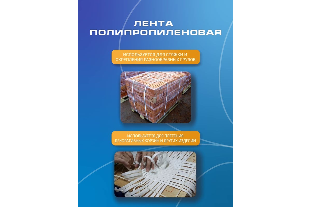 Лента способна растягиваться без уменьшения ширины. Первичная полипропиленовая стреп лента используется для плотного стягивания грузов, их перевозки и надежного хранения. Стреппинг лента применяется для перевозки крупной бытовой техники, стройматериалов (кафеля, кирпича и металлопроката), строительного профиля, труб, а также картона, бумаги в рулонах или кипах, мебели и досок.