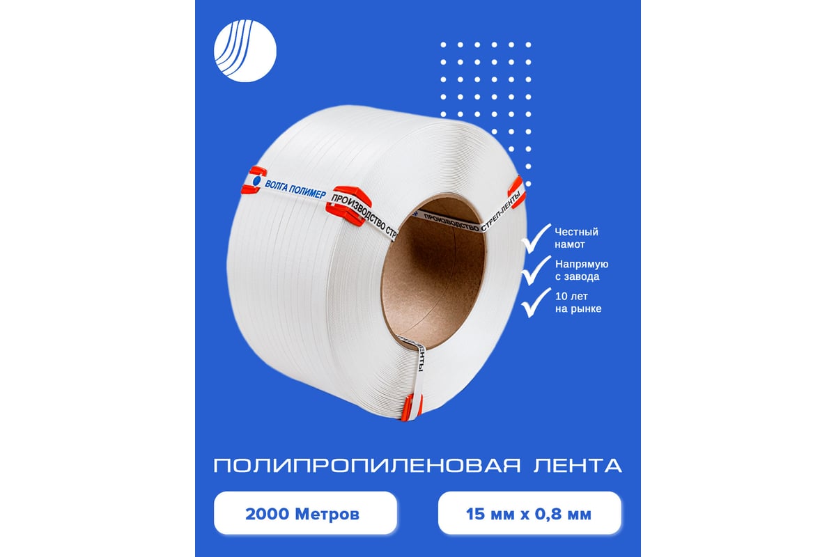 Полипропиленовая лента ВОЛГА ПОЛИМЕР 15 x 0,8 мм, 240 кгс, 2000 метров, белая 15-08-2000-101-00 является одним из самых современных упаковочных материалов. Стреппинг лента устойчива к погодным условиям и нагрузкам, не подвержена выцветанию.