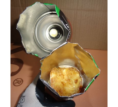 К моему прошлому отзыву от 24.12. добавлю - когда из баллонов полностью вышел весь газ, я осторожно вскрыл один из них. Внутри находилась желтая, плотная, пузыристая и притом мягкая и эластичная масса (в норме там жидкость). С клапаном было все в порядке, он не залип. Потом я вскрыл второй баллон – там то же самое. Баллоны хранились у меня вдали от источников тепла. А вот как и где они хранились до покупки – так, что в них высохло все содержимое – неизвестно. Сейчас припоминаю, что перед использованием баллонов было ощущение, что внутри не жидкость, а что-то плотное и увесистое – но тогда я этого не заметил и вспомнил об этом уже после их вскрытия.