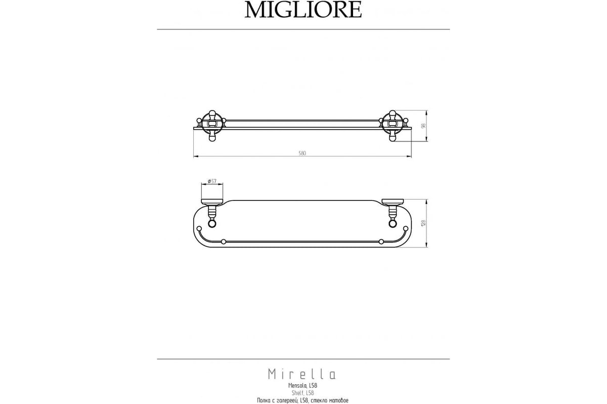 Технические характеристики Migliore MIRELLA с галереей L58 см, стекло матовое/золото