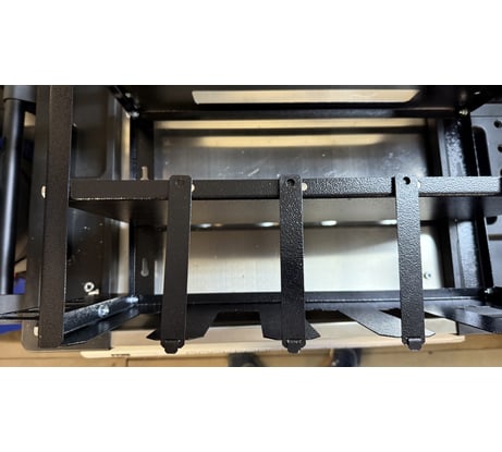 Полка спроектирована так чтобы максимально эффективно использовать доступное пространство. Она позволяет хранить инструменты компактно, освобождая столы, стеллажи от беспорядка.