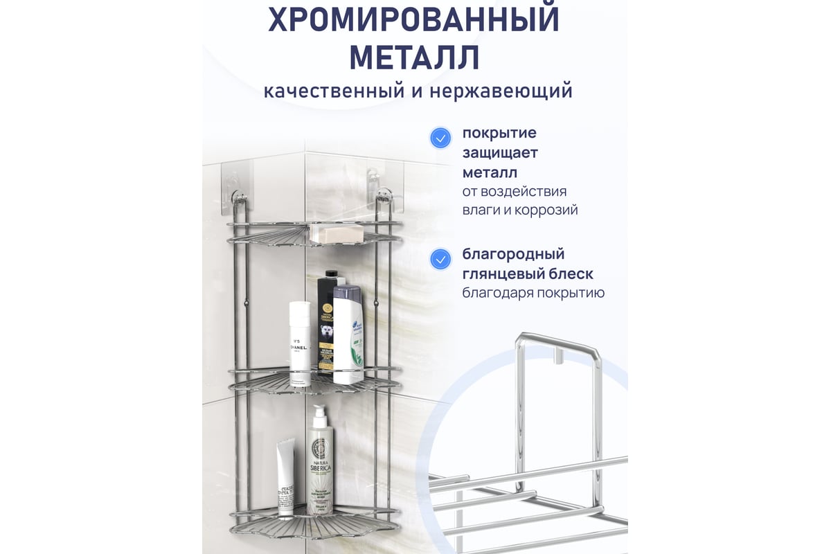 Изделие изготовлено из хромированного металла, устойчиво к воздействию высоких температур и влажности. Материал долговечен, не подвержен коррозии.