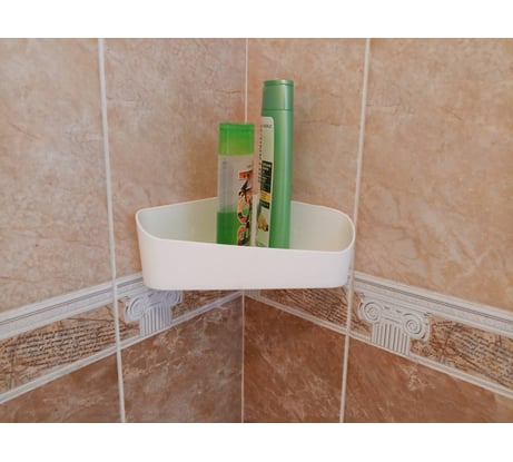 Лаконичный дизайн изделия впишется в любой интерьер ванной комнаты и не только. Треугольная форма полки позволит разместить как шампуни, бутылочки и банки с кремами, так и мочалку с мылом, игрушки, различные мелочи.