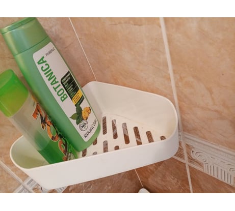 Хороший качественный пластик. Белоснежный цвет. Удачно расположенные липучки. Достаточный объём и высота бортиков. Смотриться прилично. Сделал всё по инструкции. Очистил кафель, обезжирил, прикрепил. Чтобы не промахнуться с крючками сначала надел их на полочку и снял защитную плёнку с липучек, потом прижал. Требует аккуратного подхода чтобы прикрепилось ровно. Через сутки спокойно загрузил лимитированную производителем массу предметов в 2,5 кг. Держит уверенно.
