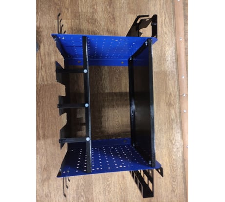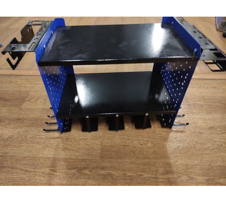 - Боковые перфорированные стенки: В комплекте идут специальные навесные кронштейны, которые позволят аккуратно разместить отвертки, плоскогубцы и аналогичный ручной инструмент. Нижний кронштейн удобно использовать для накидных ключей.