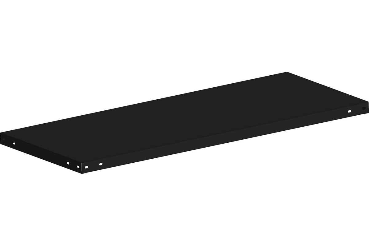 Полка выполнена из листового металла с порошковым покрытием чёрного цвета RAL9005. Максимальная допустимая нагрузка на полку - 100 кг. Надежность полки достигается за счет одного П-образного ребра жесткости. Подходит для стеллажей серии СТФЛ, СТФ, СТФУ.