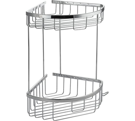Полочка угловая овальная двухэтажная для принадлежностей, решётка обладает высокими эксплуатационными характеристиками и подходит для использования дома, в общественных местах: отелях, ресторанах и пр. Изготовлена из прочной нержавеющей стали с хромоникелевым покрытием, которое придает безупречный глянцевый блеск и долговечность. Металлическая полка оснащена крючком. Аксессуар не занимает много места, надежно фиксируется к стене при помощи набора креплений (входят в комплект) и служит удобным местом для хранения бытовых и косметических средств. Габаритные размеры: высота 350 мм, ширина 280 мм, длина стороны 220 мм, расстояние между полками 230 мм.