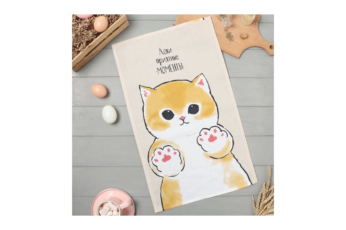 Полотенце кухонное Доляна Лови приятные моменты 35x60 см, 100% хл, 160г/м2 10202595