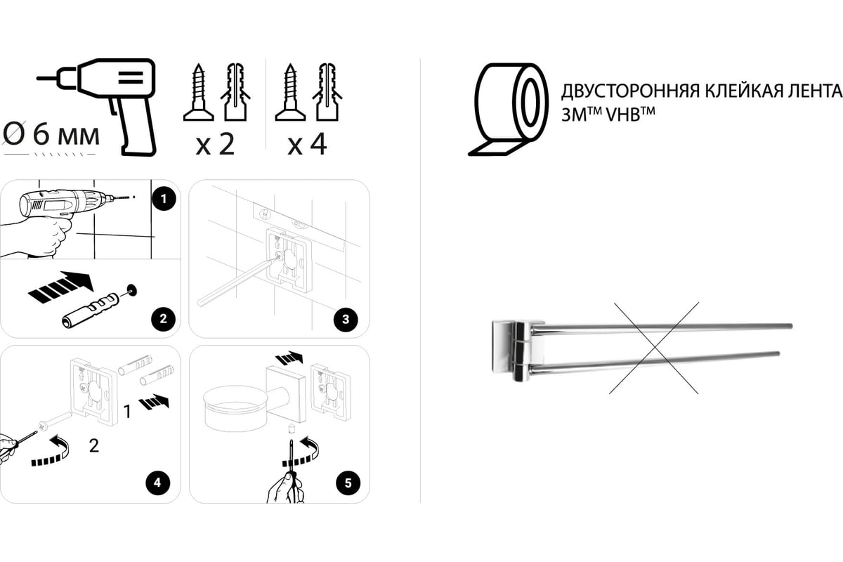 Этот полотенцедержатель изготовлен из стали и покрыт хромом, что придаёт ему современный и лаконичный вид. Он имеет форму рогов и крепится на саморезах. Хромовое покрытие защищает изделие от коррозии.