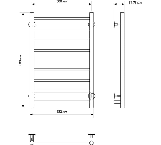 Полотенцесушитель MIXLINE VEGA 80×50 таймер, 318 Вт, 8 перекладин электрический ХРОМ 558392