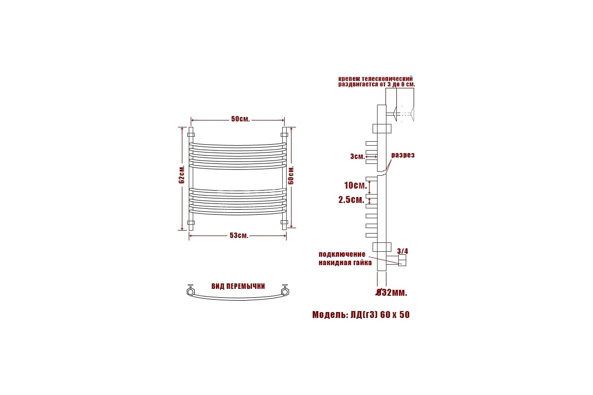 Сопутствующие товары для полотенцесушителя Ника ARC ЛД Г3 60/50