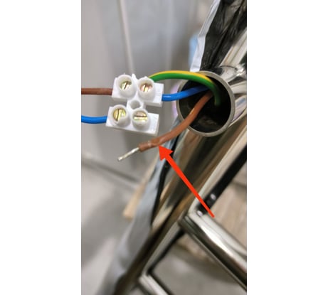 Наконец-то дошло дело до установки. Был неприятно удивлен отношением производителя к электрической безопасности , да и в целом качеством работы с элеткропроводкой. На первом и втором фото стрелками указано место куда был закручен винт колодки, если бы не проверил это, то гадал бы почему это не работает полотенцесушитель. На других фото видно как эти бедные колодки были "запиханы" ( другого слова и не подберешь) в трубу, как им досталось и как пластик был содран на обеих колодках. В результате доли миллиметра разделяют винт под напряжением (!) и корпус полотенцесушителя. Причем правая колодка (на последнем фото) больше не достается. Если бы не это , поставил бы 5 звезд наверное, потому что остальное все сделано хорошо .