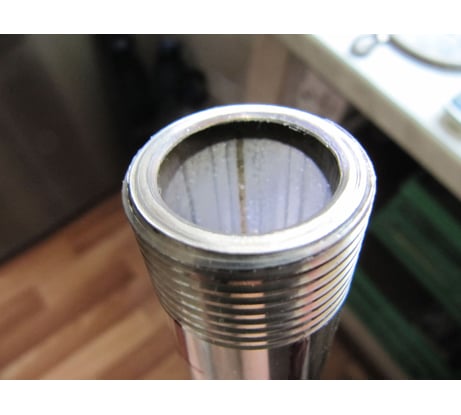 Полимерное покрытие обеспечивает диэлектрические свойства и защиту от коррозии внутри трубы (похожа по ощущением на силикон или резиновое покрытие). Произведено из нержавеющей трубы марки AISI 304, тип сварного соединения Бесшовный шов (на фото видно), резьба без нареканий.
