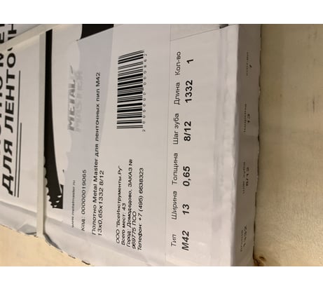 Отзывы о полотне для ленточных пил (13х0.65х1332 мм; 8/12"; M42) MetalMaster 19065