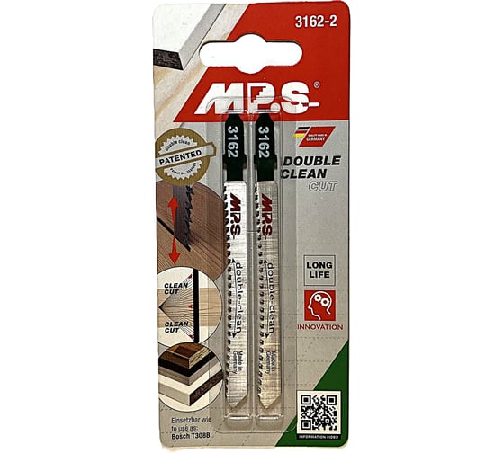 MPS Полотно для лобзика по дереву (T308B), 2 шт., MPS 3162-2 предназначено для резки мягкой древесины, ламинированной плиты, кухонной столешницы, фанеры.