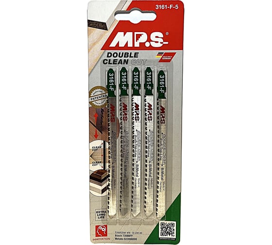 MPS Полотно для лобзика по дереву (T308BFP), 5 шт., MPS 3161-F-5 предназначено для резки твердой древесины, мягкой древесины, ламинированной плиты, кухонной столешницы, фанеры, ламината.