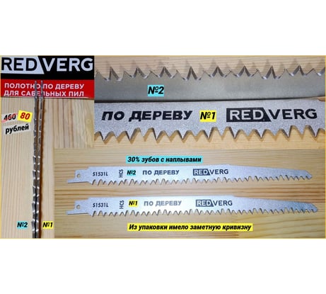 Сабельные полотна S1531L Redverg мне в работе не понравились. Вроде бы ресурс неплохой, но проигрывают более дешёвым аналогичным полотнам в скорости и комфорте. Да и не все аккумуляторные сабельки вывозят работу с ними. Ссылка на подробный отзыв по ним https://vk.com/wall-195683967_1179