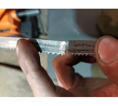 25 резов проф трубы 30х30х1,5мм. И лента лопнула на сварном соединение.