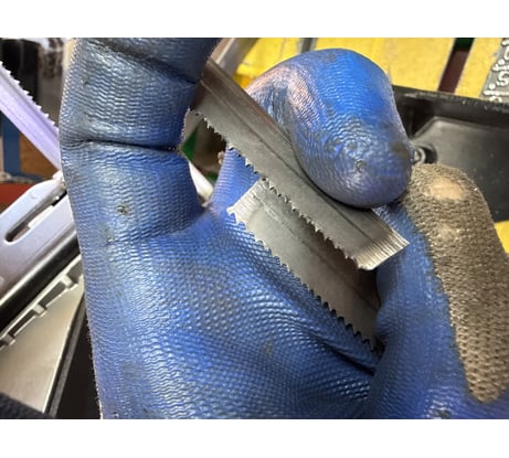 Рендер на картинке и реальность оказались слишком далеки, друг от друга. Упаковка в бумагу и скрученное полотно в 4 раза это просто классика. Будьте готовы что пила ударит вас по лицу когда захотите снять стальную проволку которой пила скручена. А шлифованный стык с короткими зубами просто "идеально" бьёт по заготовке.