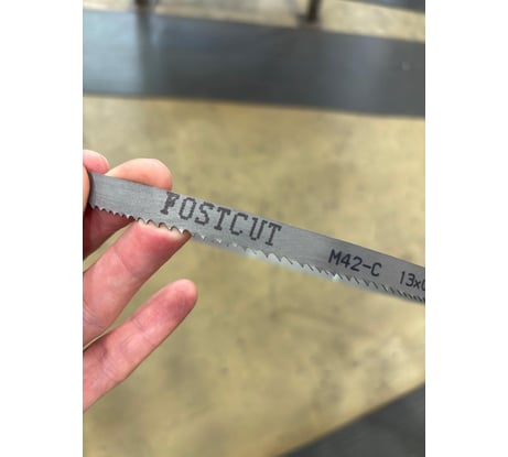 Основная особенность — полотно из биметаллического материала, где рабочая кромка зубьев изготовлена из быстрорежущей стали M42 (содержание кобальта около 8%). Основа полотна производится из более гибкой и прочной стали, что придаёт пилке необходимую эластичность и устойчивость к нагрузкам.
