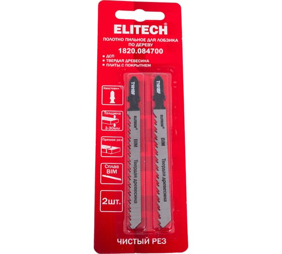 Полотно пильное Elitech 1820.084700 совместимо с лобзиком. Модель крепится к электроинструменту посредством хвостовика типа Т.