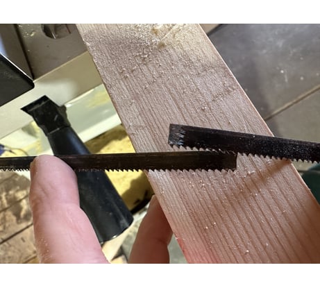 Нельзя пилить кривые более мелкого радиуса или кривизны. Получается неплохо вырезать окружности диаметром до 5-6см. Меньше уже проблематично, материал зажимает полотно. Тестировал на сосновых досках не более 25мм толщиной. СВИСТИТ! С самого начала установки постоянный свист при контакте с материалом. Никак не получилось от него избавиться регулировкой натяжения. При том, что полотно установлено по заводским рекомендациям.