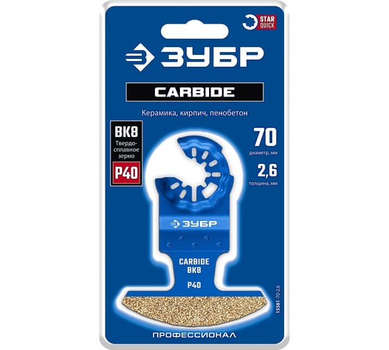 Полотно Зубр CARBIDE ВК8 Р40, 70x2.6 мм с твердосплавной крошкой: керамика, кирпич, пенобетон 15581-70-2.6